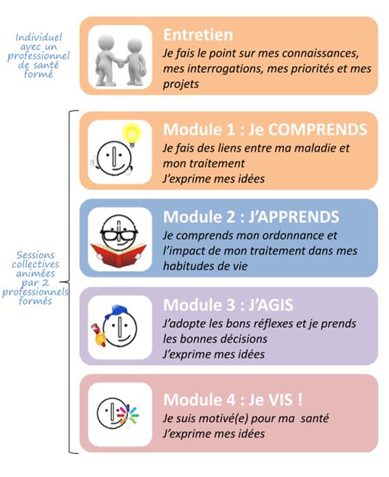 The healthcare professionals who run the program’s workshops include physicians, pharmacists and nurses trained in therapeutic education.