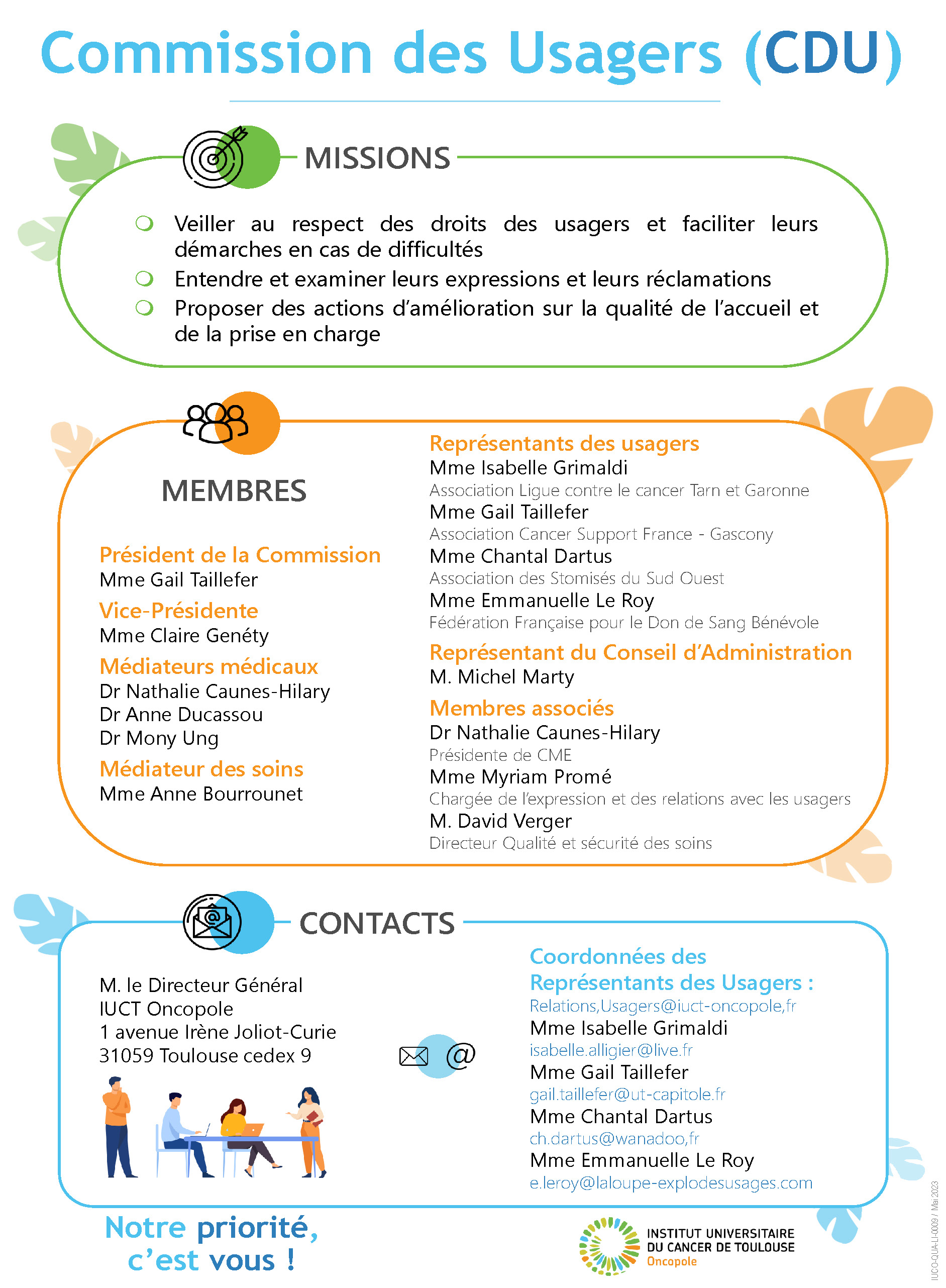 Ils peuvent être joints à l’adresse : Relations.Usagers@iuct-oncopole.fr