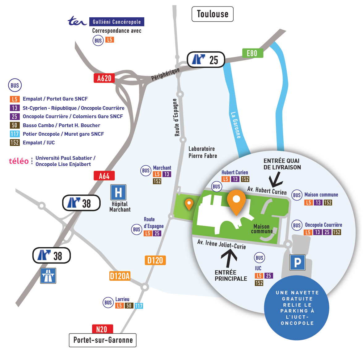 Une navette gratuite entre le parking et l'Institut est à votre disposition du lundi au vendredi, de 6h45 à 21h00.